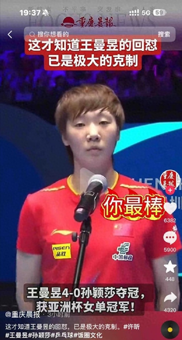 瞬间,所有人都认为王曼昱是在反击孙颖莎粉丝,甚至很多人都表示,这就是最好的反击。