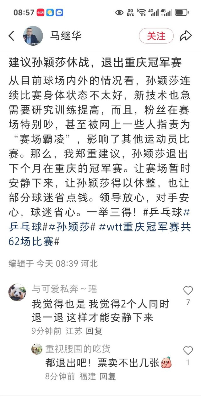 或许有一些粉丝是不理智的,但是运动员并无过错,所有运动员都在赛后感谢粉丝,王曼昱也感谢粉丝来支持自己。